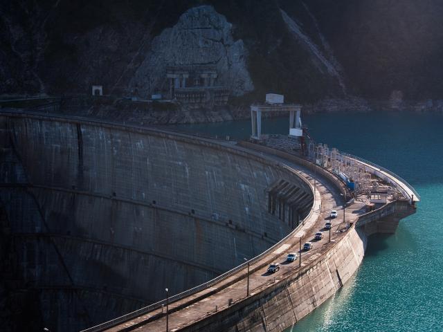 Обои Плотина гидроэлектростанции в горах
