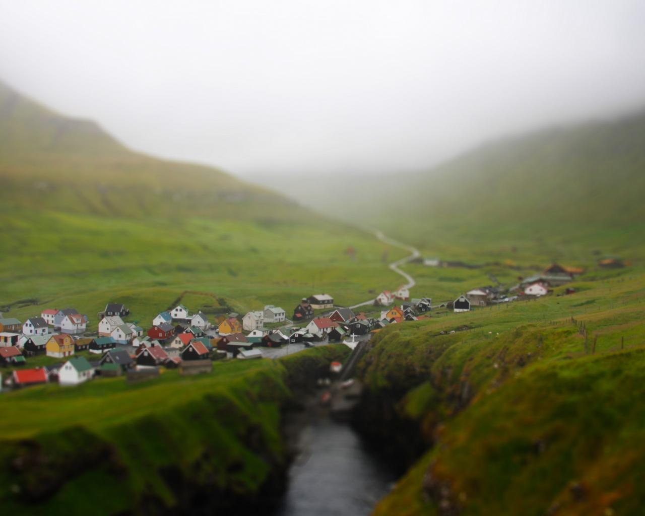 Обои Овраг на окраине горного селения