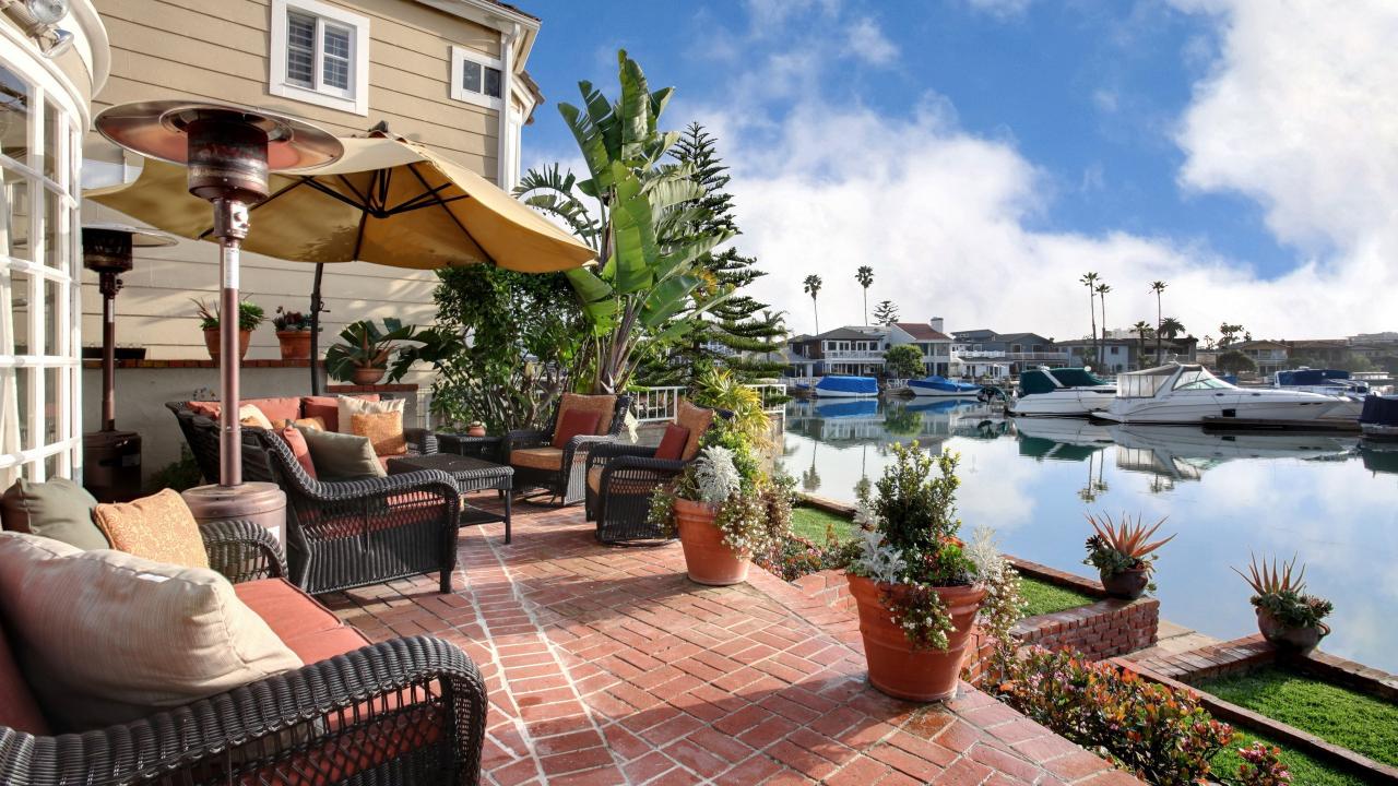 Обои Плетеные кресла и цветы в горшках у набережной