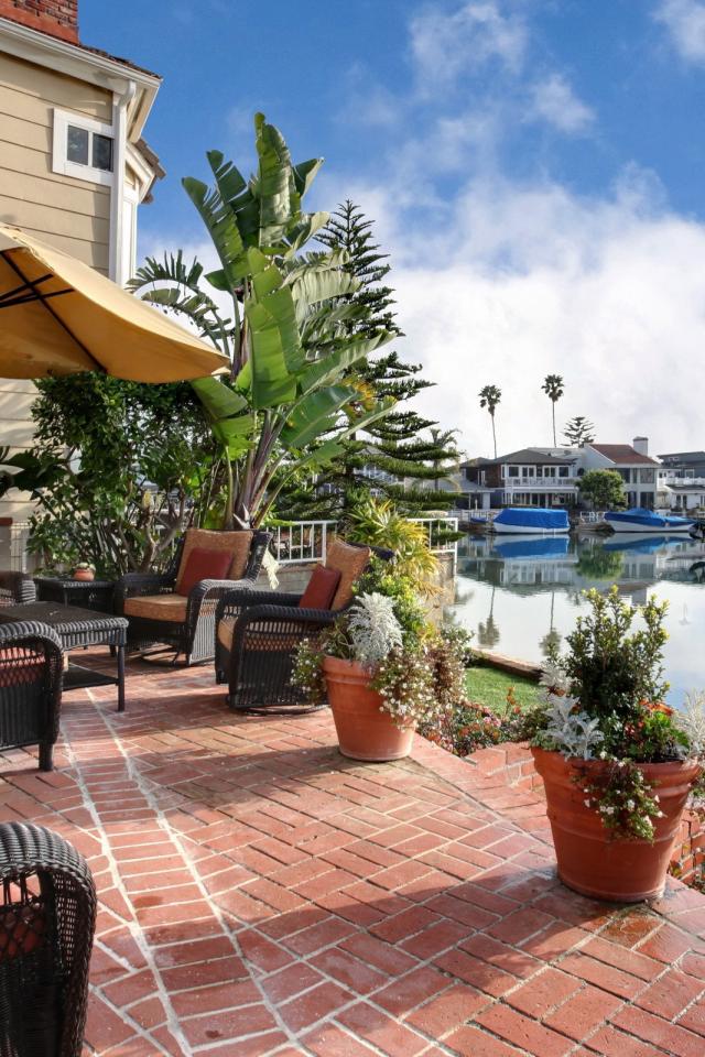 Обои Плетеные кресла и цветы в горшках у набережной