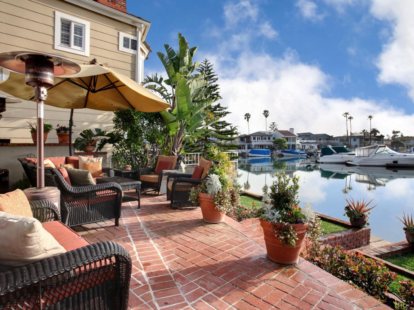 Обои Плетеные кресла и цветы в горшках у набережной