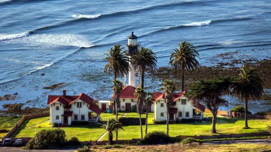 Обои Маяк под пальмами на берегу моря