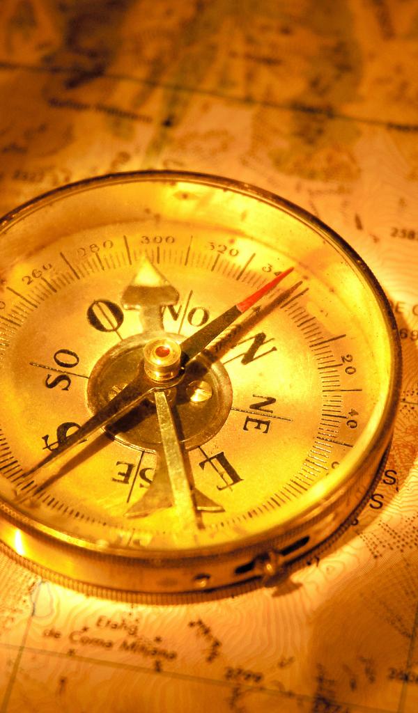 Обои Старинный компас на карте путешественника