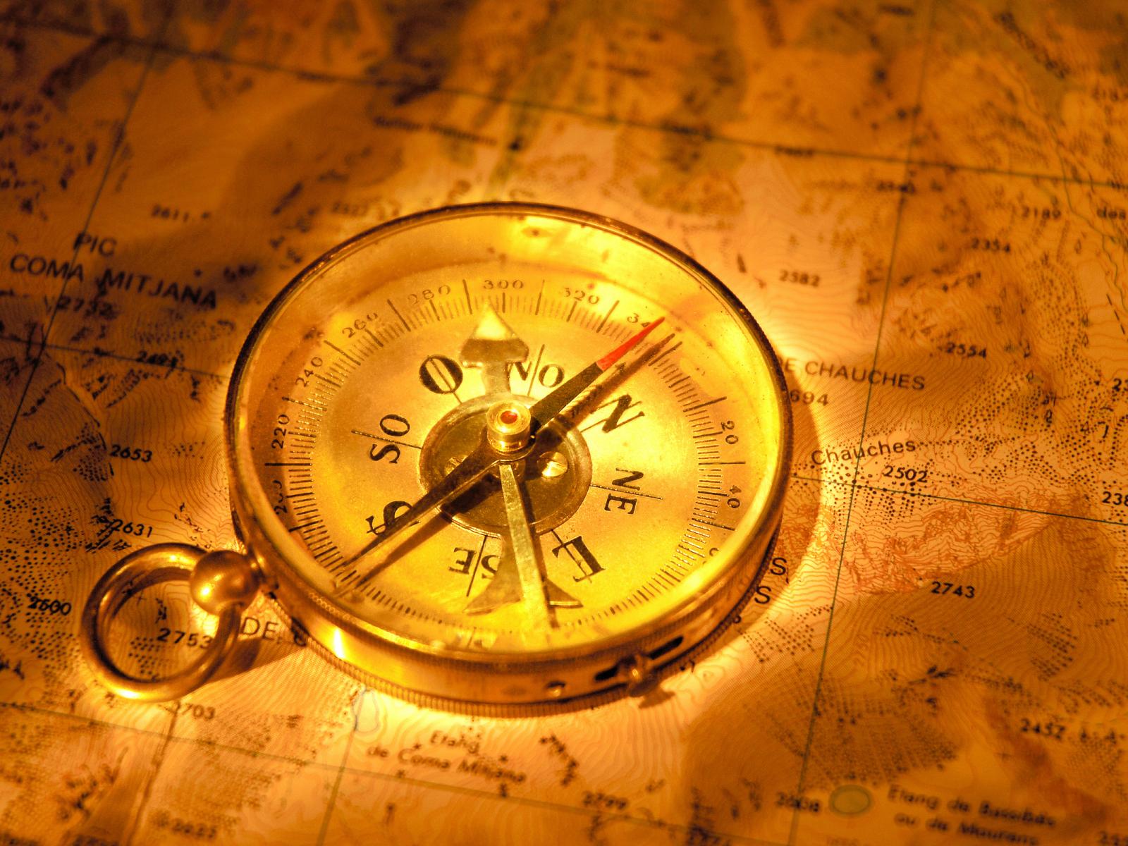 Обои Старинный компас на карте путешественника
