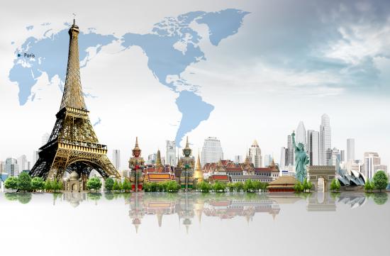 Обои Эйфелева башня, Париж, карта мира