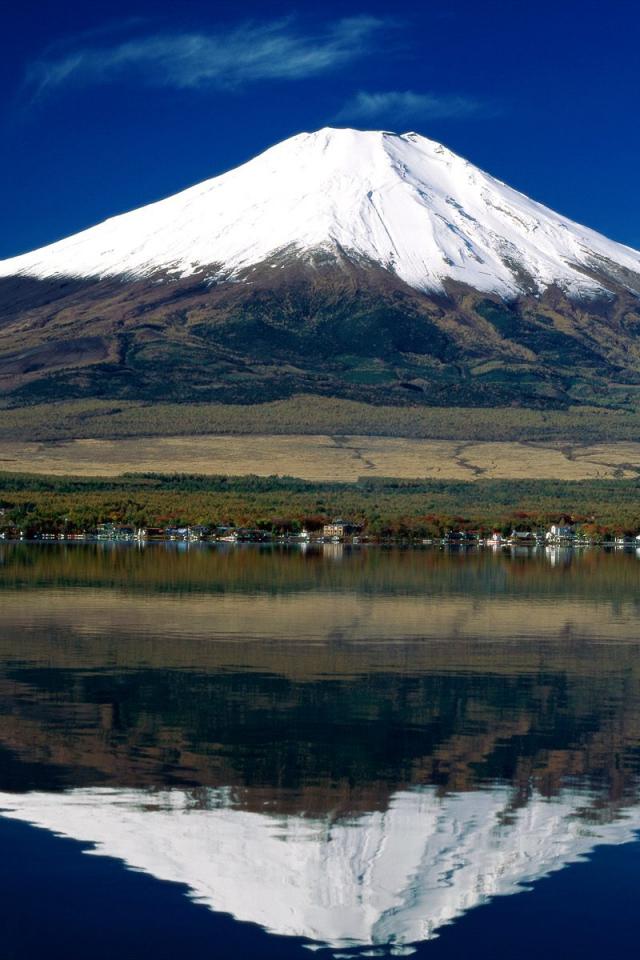 Обои Поле розовых цветов на фоне горы Фудзияма в Японии