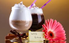 Обои Два стакана с десертом, корицей и цветком герберы