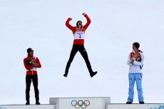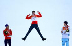 Обои Обладатель золотой медали немецкий лыжник Эрик Френцель на олимпиаде в Сочи