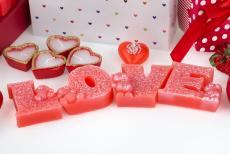Обои Декоративные свечи в форме сердца и буквы LOVE