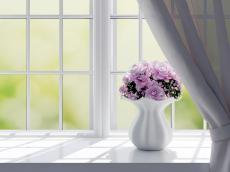 Обои Букет розовых роз в белой вазе на окне