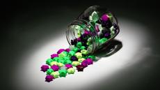 Обои Конфеты в разноцветных обертках высыпались из банки