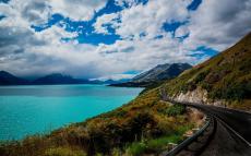 Обои Шоссе по берегу голубого озера