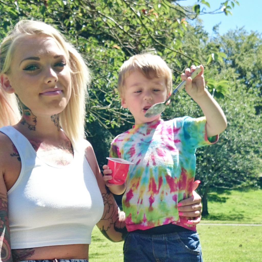 Обои Татуированная девушка с ребенком
