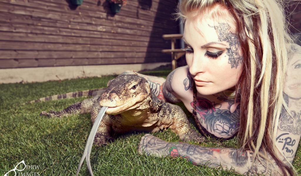 Обои Татуированная девушка с рептилией