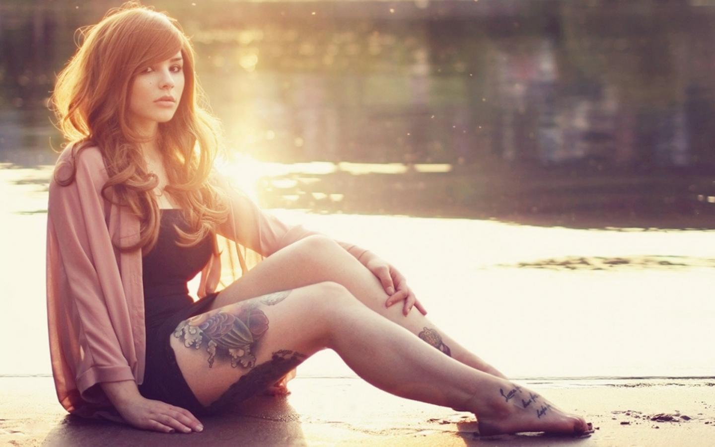 Обои Девушка с татуировкой на ноге