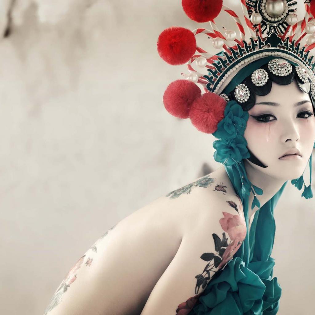 Обои Японская девушка с татуировками