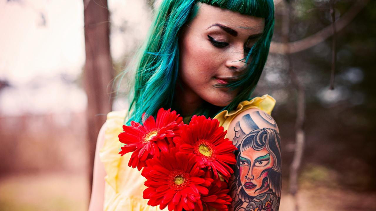Обои Зеленоволосая девушка с тату