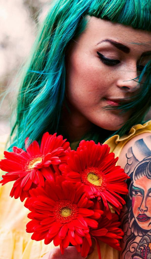 Обои Зеленоволосая девушка с тату