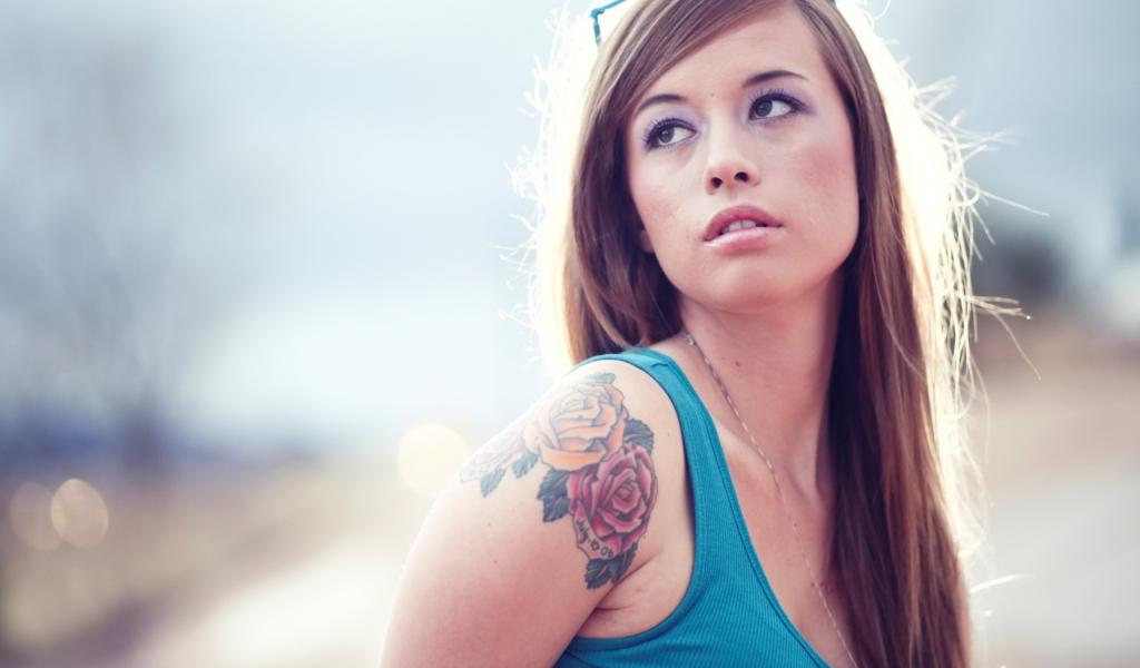 Обои Татуировка розы на плече у девушки