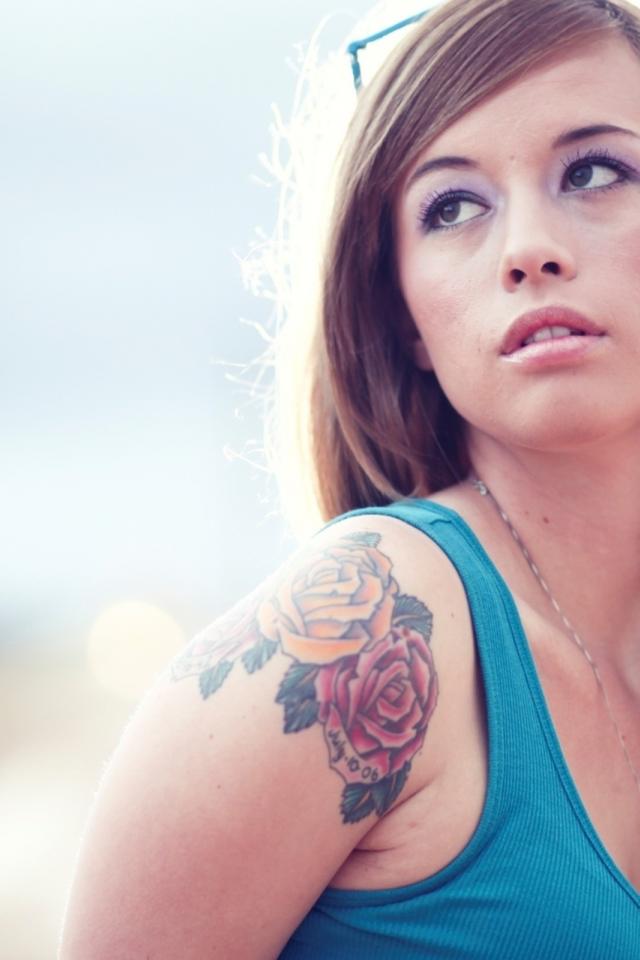 Обои Татуировка розы на плече у девушки