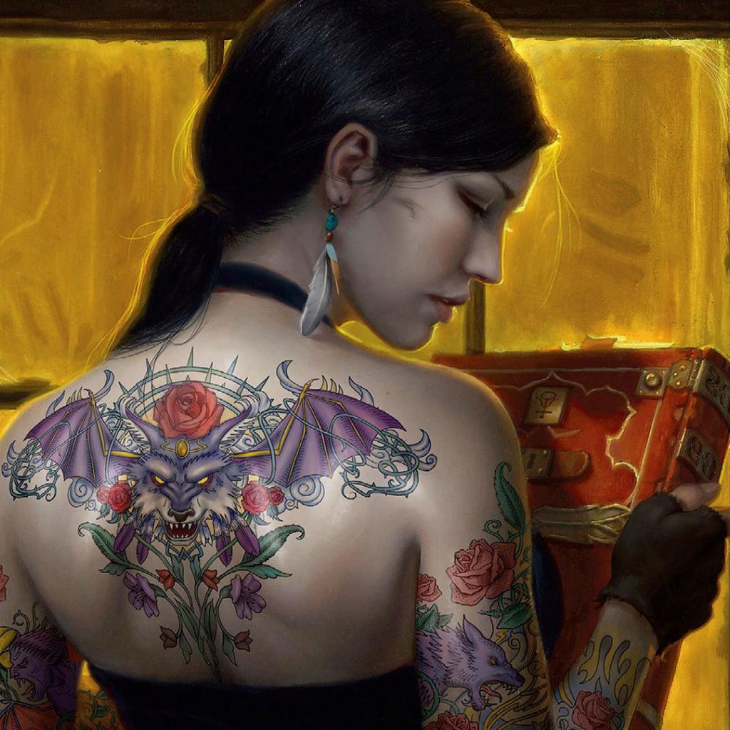Обои Девушка с татуировкой дракона на спине
