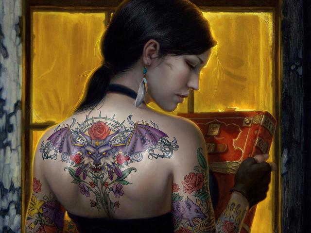 Обои Девушка с татуировкой дракона на спине