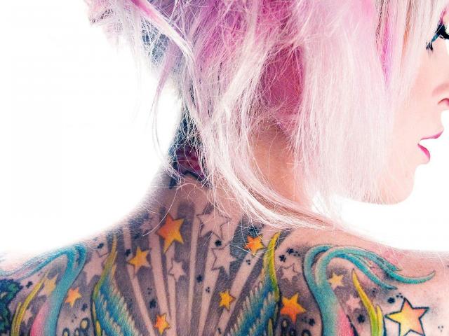 Обои Девушка с розовыми волосами и татуировкой на спине
