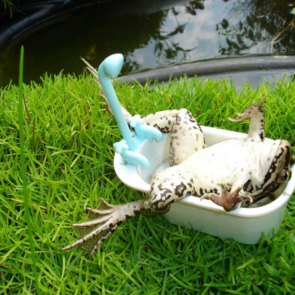 Обои Лягушка лежит в ванной