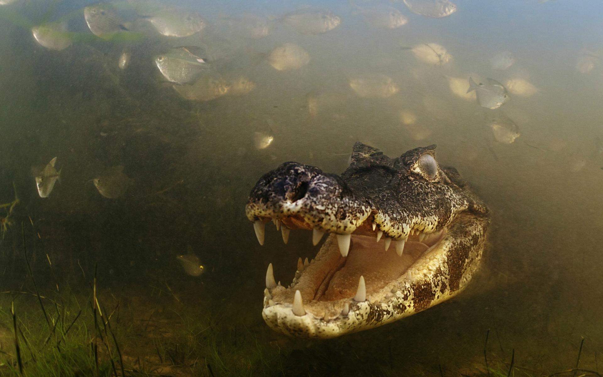 Обои Злобный крокодил среди рыб