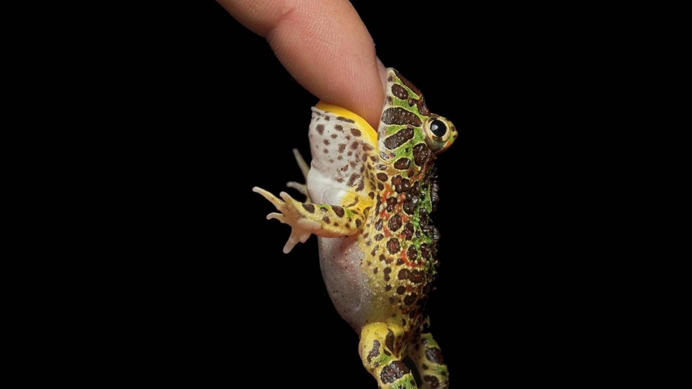 Обои Маленькая лягушка на пальце