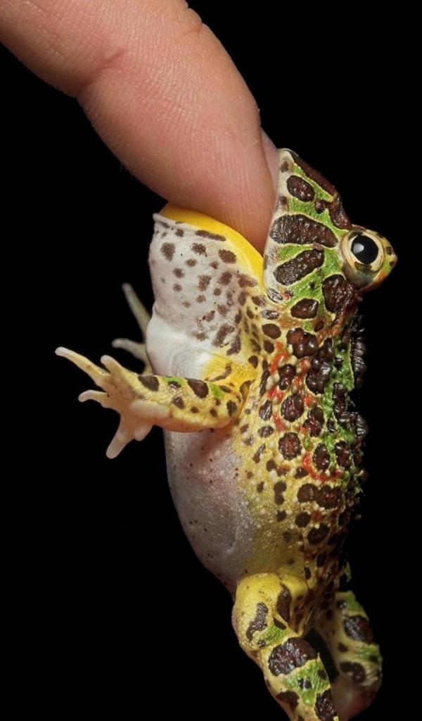 Обои Маленькая лягушка на пальце