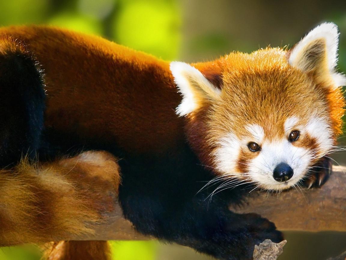 Обои Красная панда лежит на стволе дерева