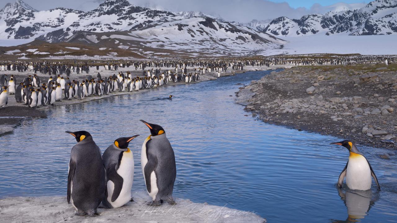 Обои Пингвин стоит по пояс в воде