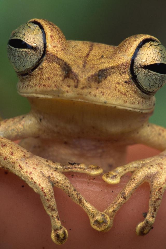 Обои Коричневая лягушка смотрит в кадр