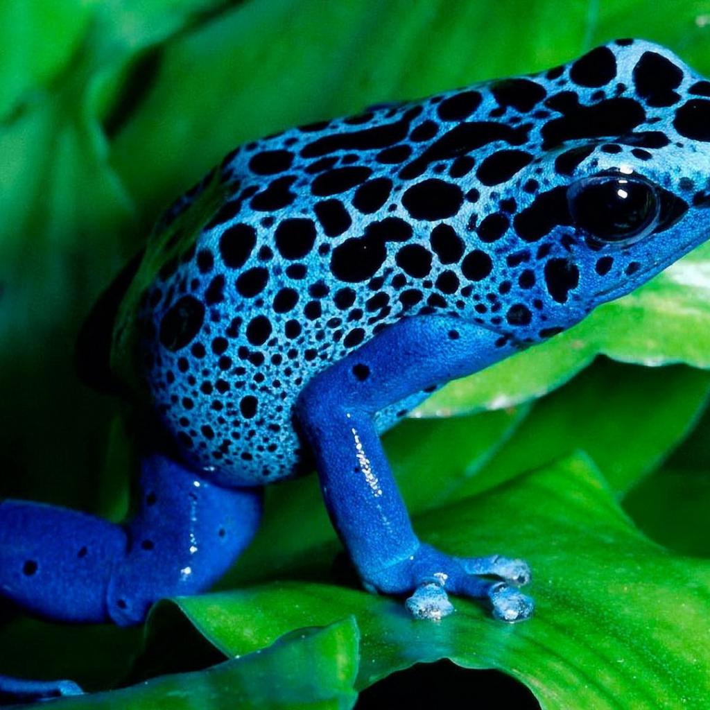 Обои Синяя лягушка на зелени
