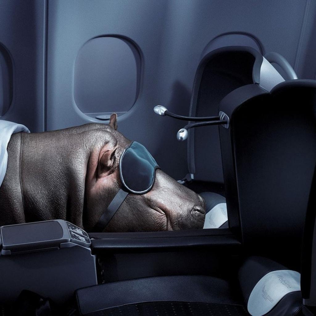 Обои Бегемот спит в самолете