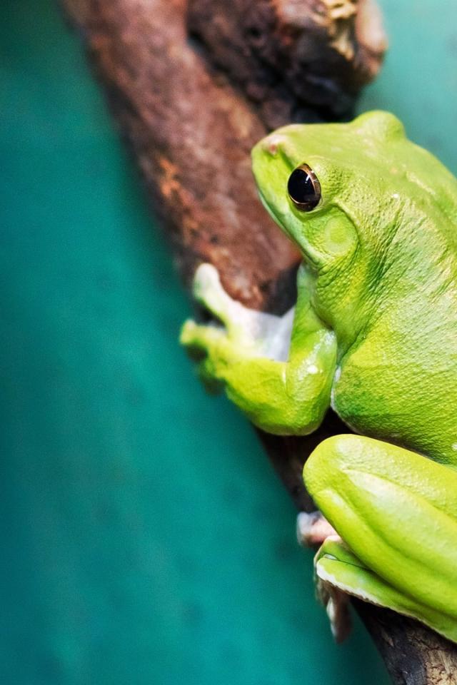 Обои Большая зеленая лягушка на ветке