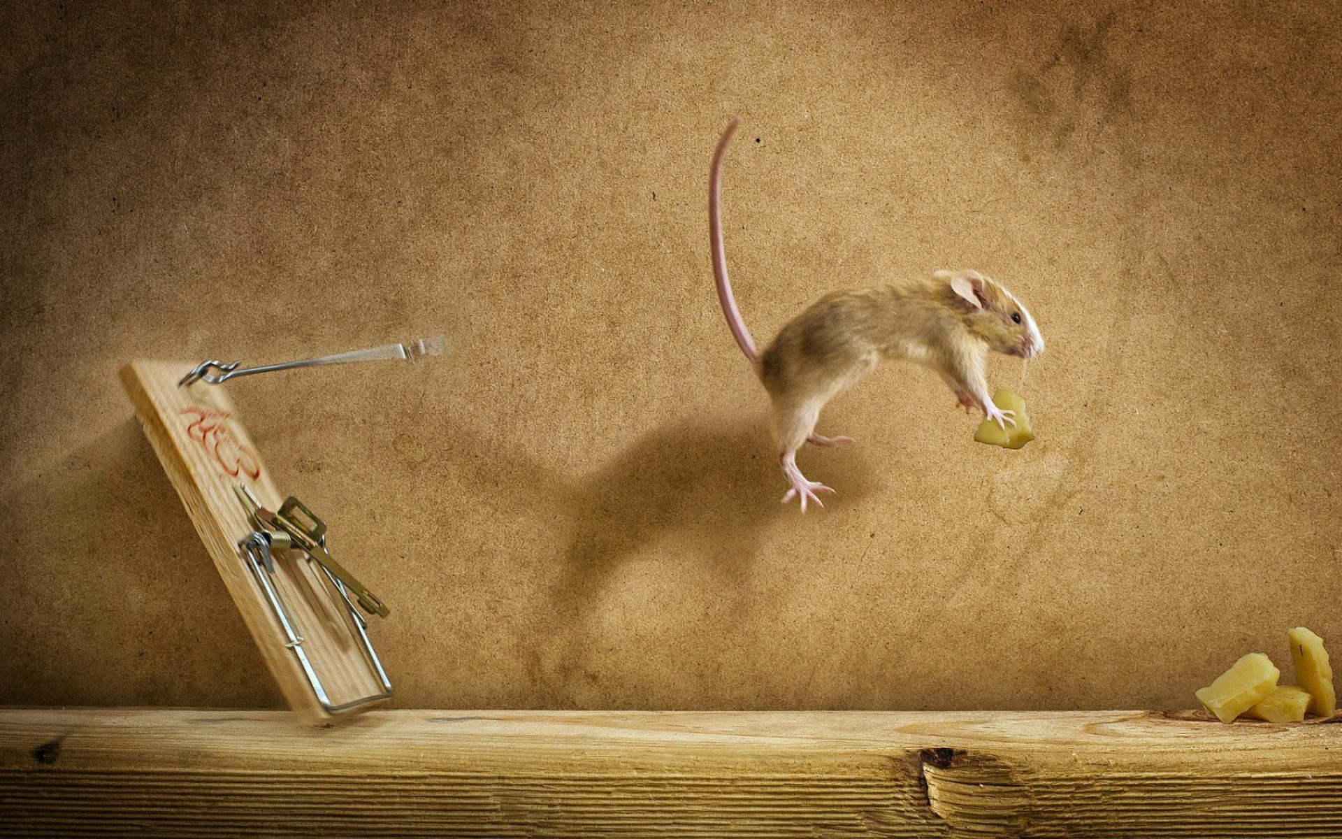 Обои Мышка украла сыр из мышеловки