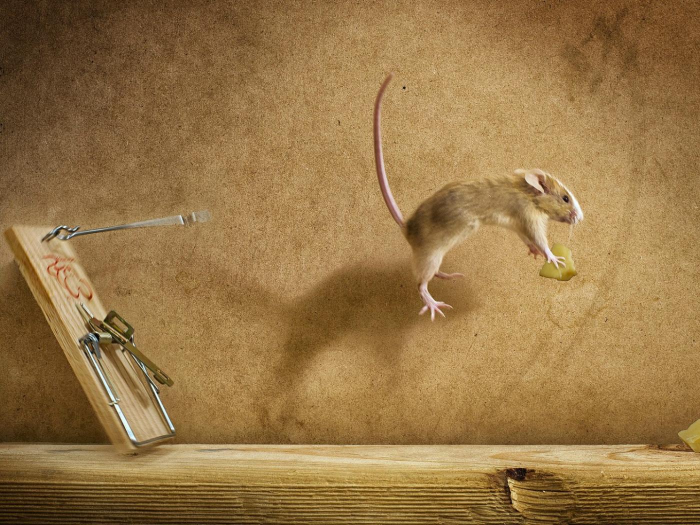 Обои Мышка украла сыр из мышеловки