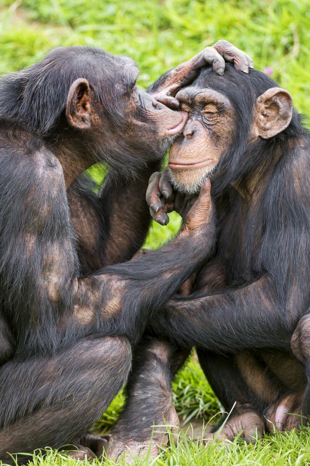 Обои Сладкая парочка шимпанзе