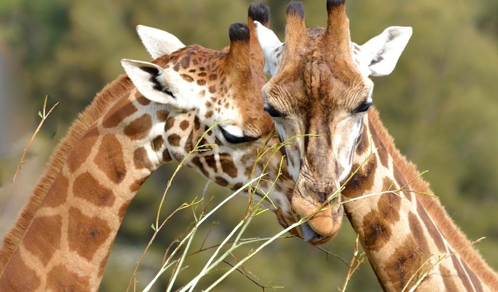 Обои Мордочки пары жирафов