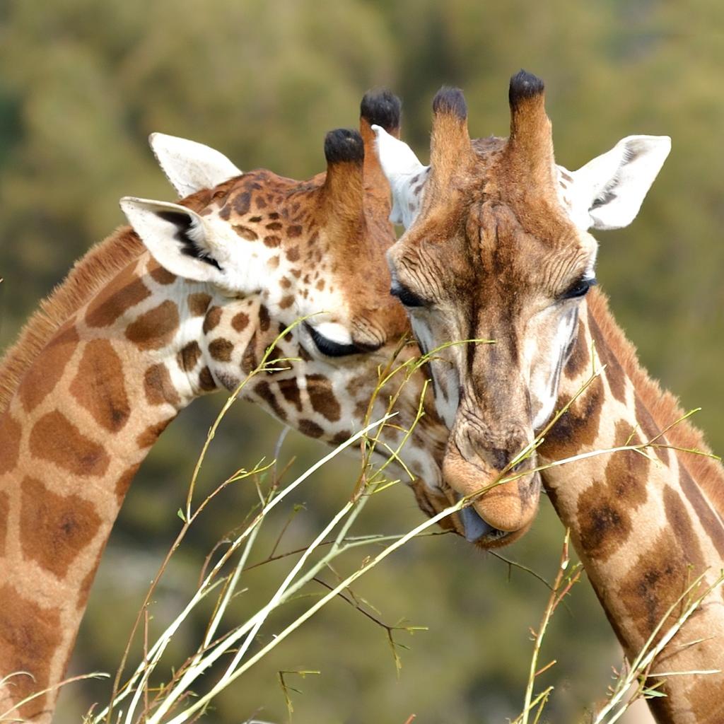 Обои Мордочки пары жирафов