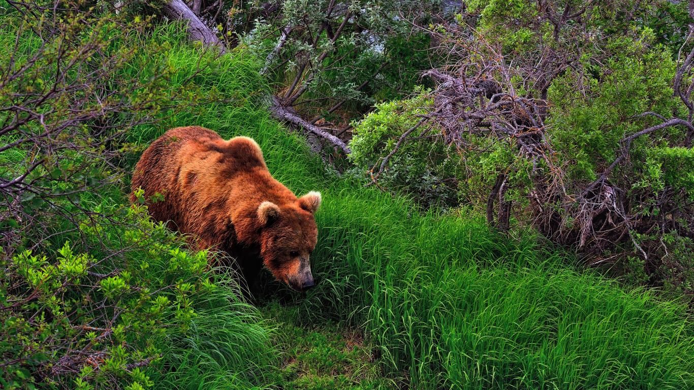 Обои Медведь нашел клубнику, мультфильм Маша и медведь