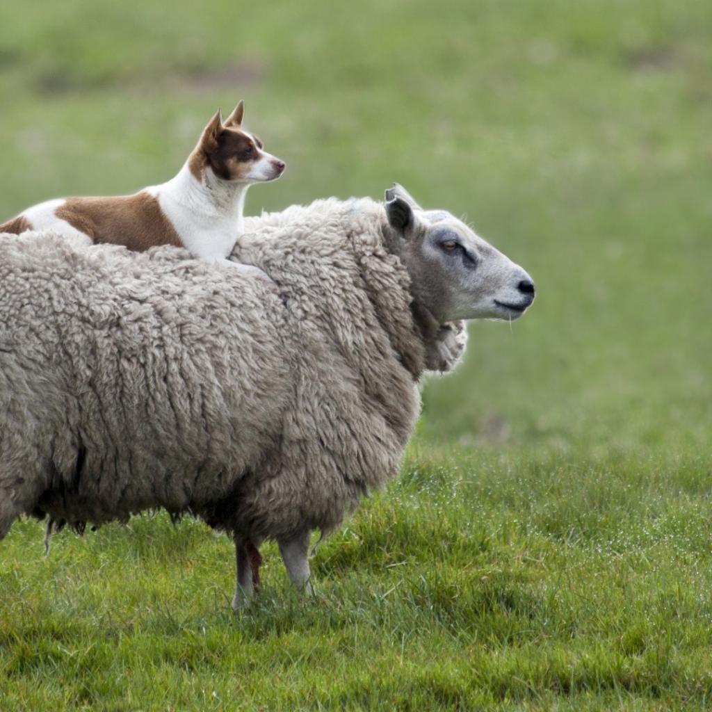Обои Собака на овце