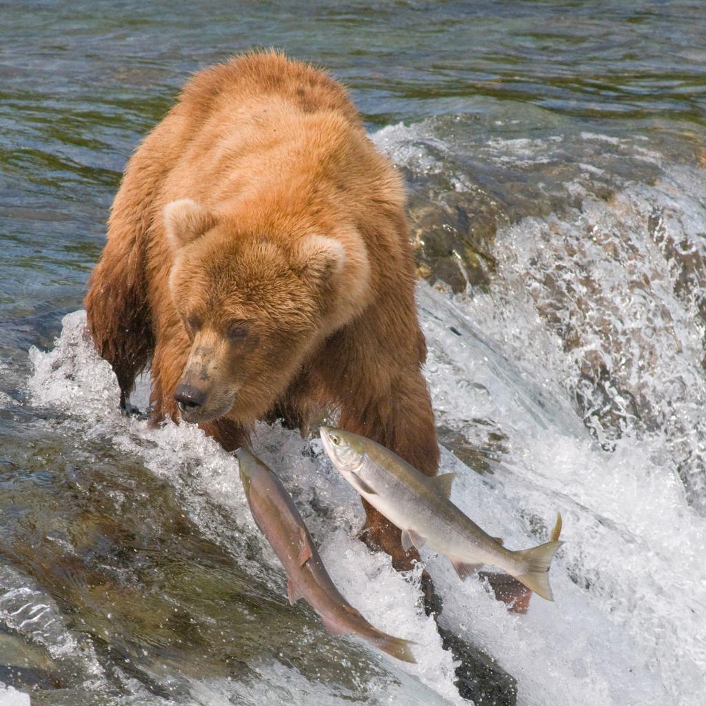 Обои Брызги, Медведь, Рыба