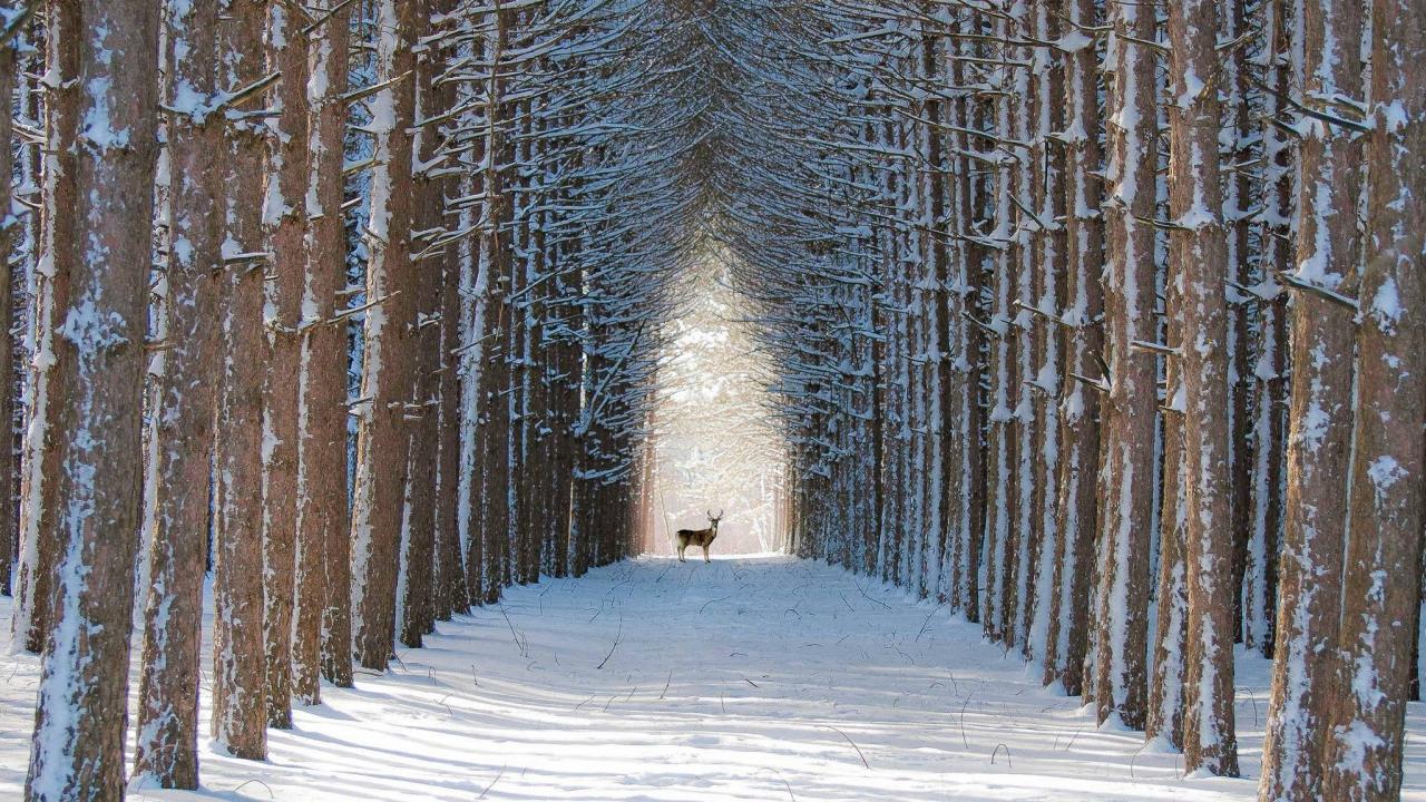 Обои Гордый олень в зимнем лесу