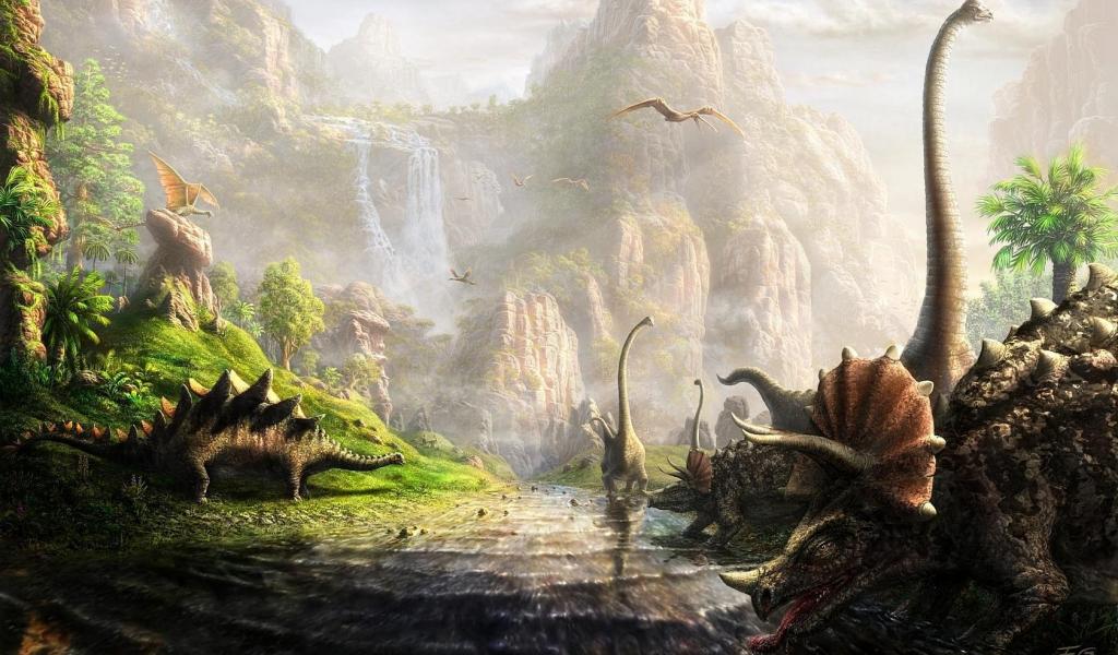Обои Динозавры у реки