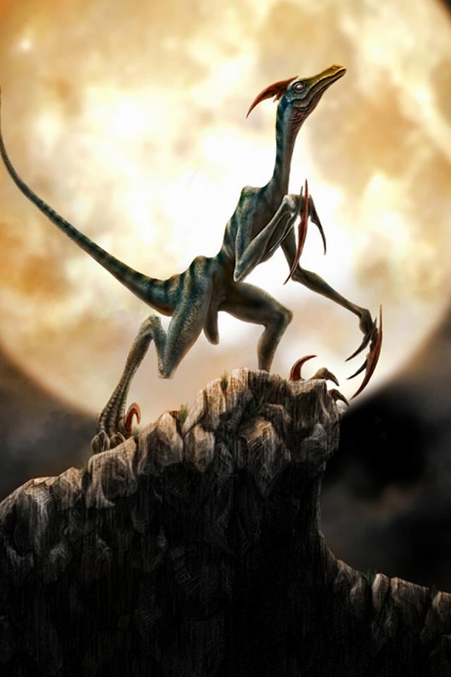 Обои Динозавр на фоне луны