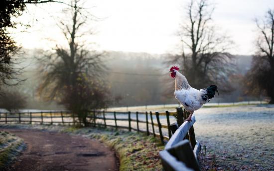 Обои Белый петух на заборе