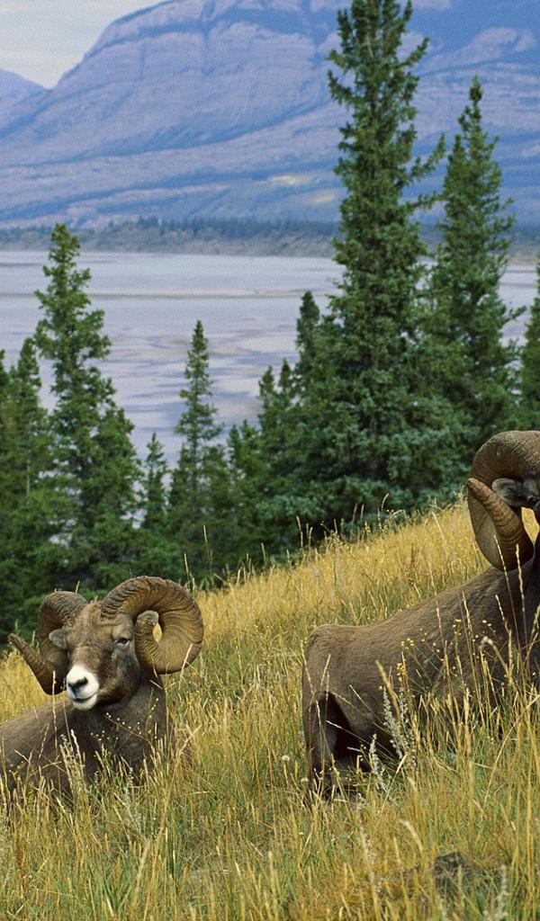 Обои Два барана на склоне у озера